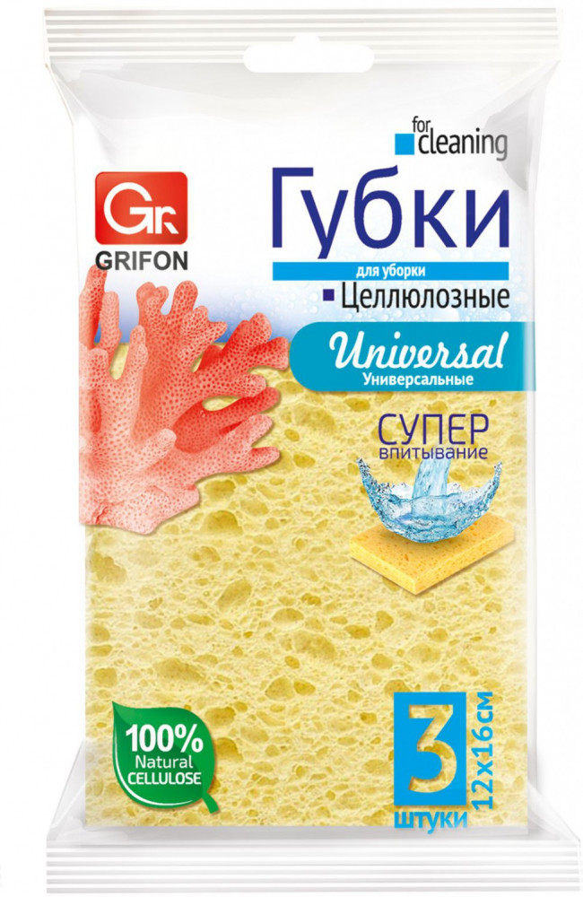 Удобные универсальные губки Grifon прямоугольной формы изготовлены из натуральной целлюлозы. Обладает повышенной впитывающей способностью, не оставляет следов на поверхности. При контакте с водой становится очень мягкой. Подходит для влажной уборки и личной гигиены.
