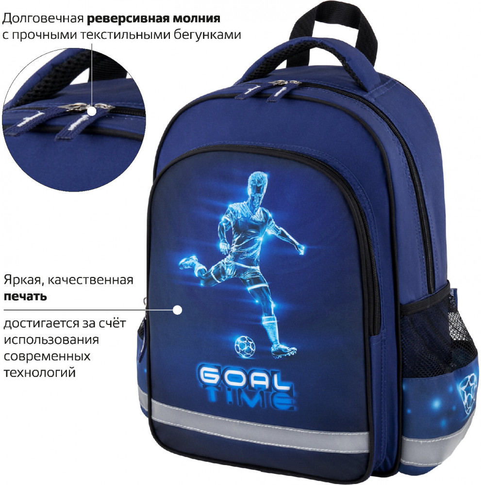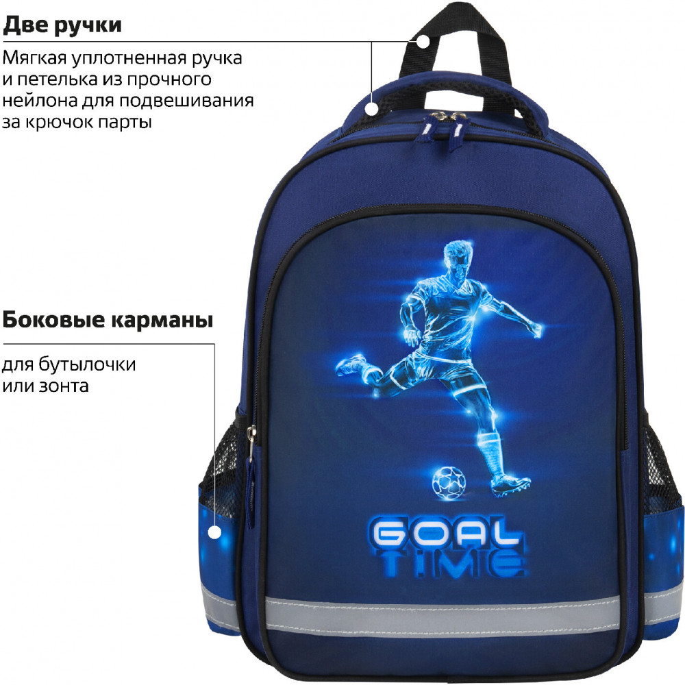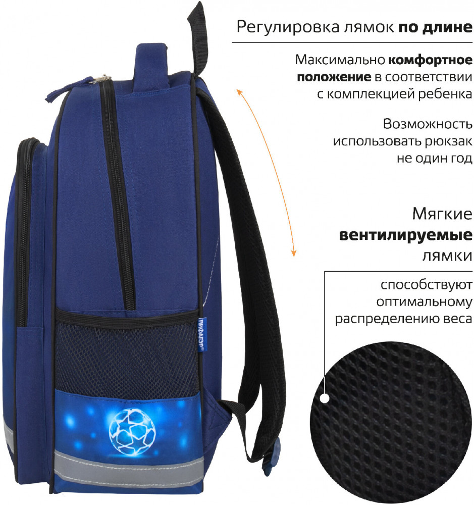 Пифагор Рюкзак школьный «Goal»В данный момент этот товар отсутствует в продаже. Возможно, у нас найдется аналогичный или похожий товар здесь. Серия: School Предназначен для учеников начальной школы, выполнен из прочного полиэстера. Уплотненная спинка, лямки с внутренней поверхностью из воздушного спонжа обеспечат комфорт при носке. Рюкзак имеет 1 вместительное отделение на молнии, 1 передний и 2 боковых кармана. Оптимальный размер рюкзака позволяет вместить все необходимые школьные принадлежности. Мягкие широкие регулируемые лямки способствуют оптимальному распределению веса. |