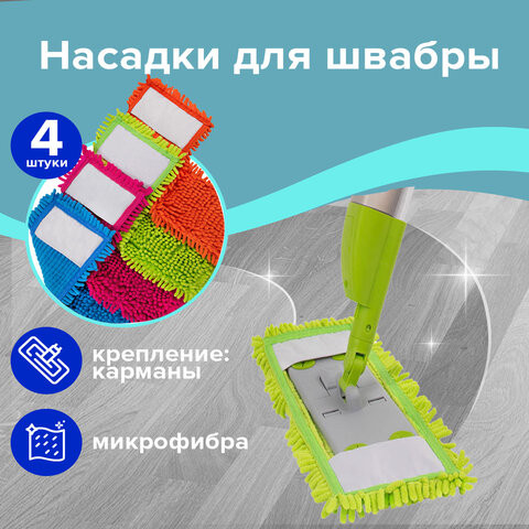 Laima Комплект насадок для швабрыВ данный момент этот товар отсутствует в продаже. Возможно, у нас найдется аналогичный или похожий товар здесь. Комплект из 4-х ярких насадок МОП из микрофибры букли/синель предназначен для проведения сухой и влажной уборки помещений. Разные цвета можно применять в разных помещениях. Имеет повышенную впитываемость. МОПы универсальные для флаундеров 38-42 см. |