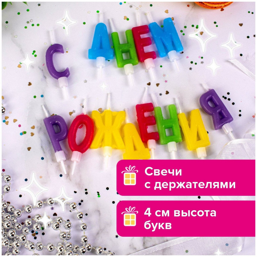 💳 Оплатить за товар можно при получении 🇰🇿 Есть бесплатная доставка по Казахстану от 1 дня 🎁 Копите бонусы с каждой покупки Свечи для торта являются неотъемлемым атрибутом праздника. Свечи-буквы золотая сказка станут прекрасным украшением торта и других кондитерских изделий по случаю дня рождения или юбилея. В состав набора входят 13 свечей желтого, голубого, розового, зеленого и фиолетового цветов, которые выполнены в виде букв и составляют фразу «С Днем рождения». Свечи изготовлены из парафина и укомплектованы пластиковыми держателями для удобства размещения в торте или другом кондитерском изделии. |