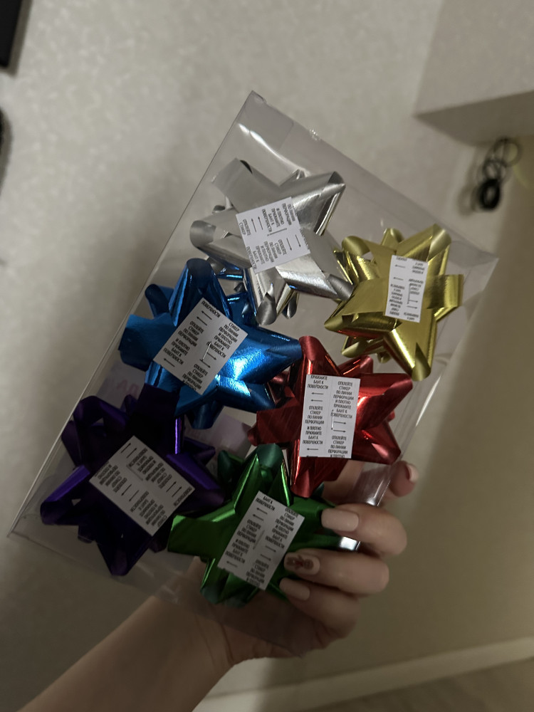 💳 Оплатить за товар можно при получении 🇰🇿 Есть бесплатная доставка по Казахстану 🎁 Копите бонусы с каждой покупки Бант-звезда — идеальный вариант для тех, кто считает, что каждый подарок должен быть уникальным и выделяться из массы других своей оригинальностью. Набор состоит из 6-ти бантов-звезд в шести цветах с эффектом металлик — серебристый, золотистый, красный, синий, зеленый, фиолетовый. Диаметр банта — 7,5 см. |