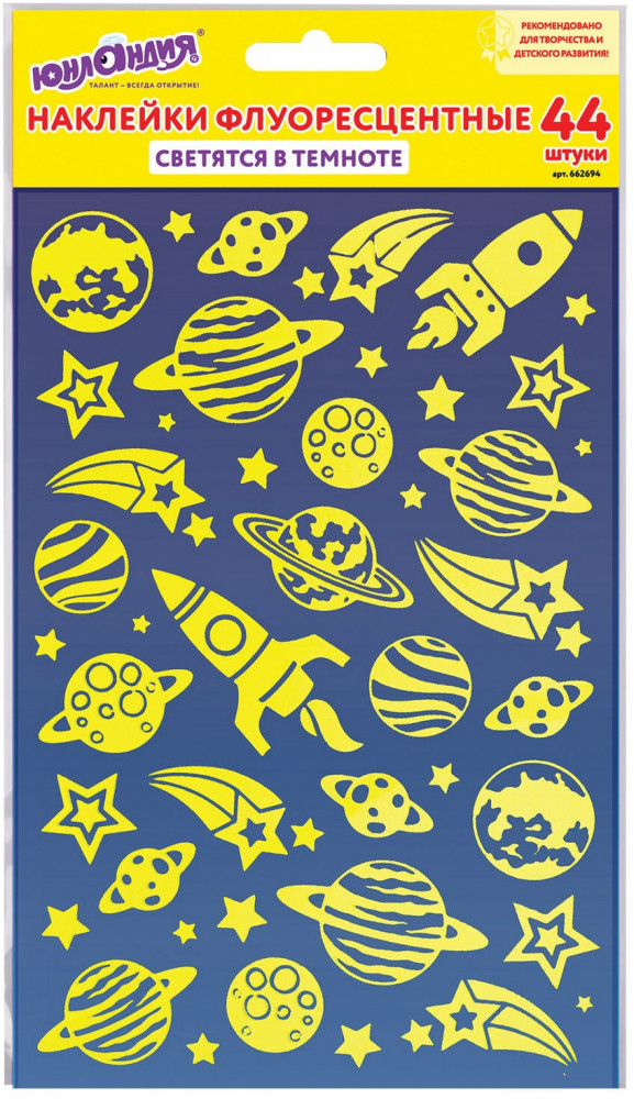 Юнландия Наклейки флуоресцентные «Космос»-20% +26 светятся качество плотные детям нравятся яркость слабая