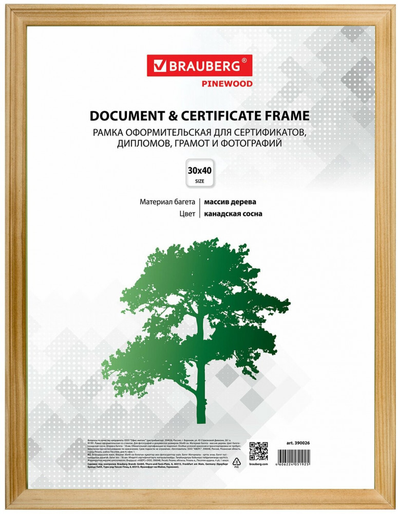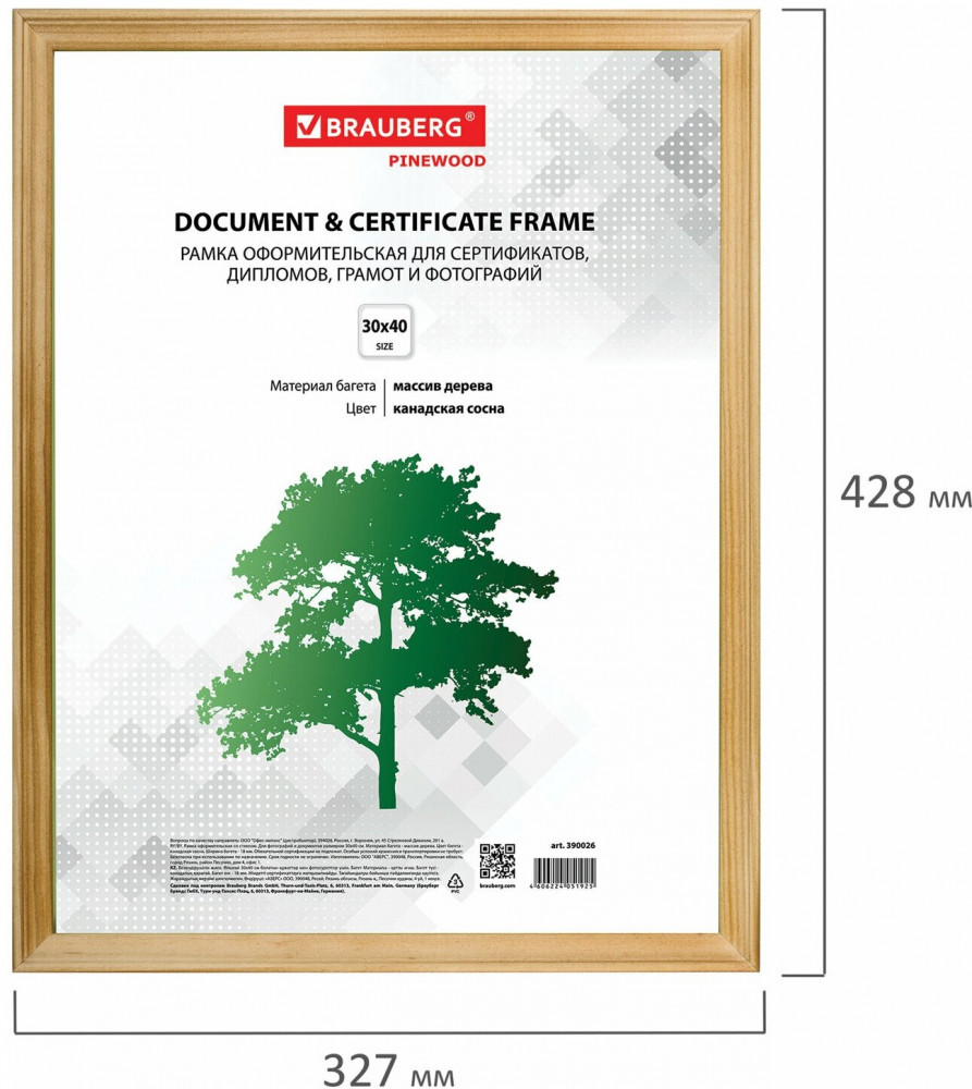 Brauberg Рамка деревянная со стеклом-20% +73 лёгкая качественная натуральное дерево доступная цена