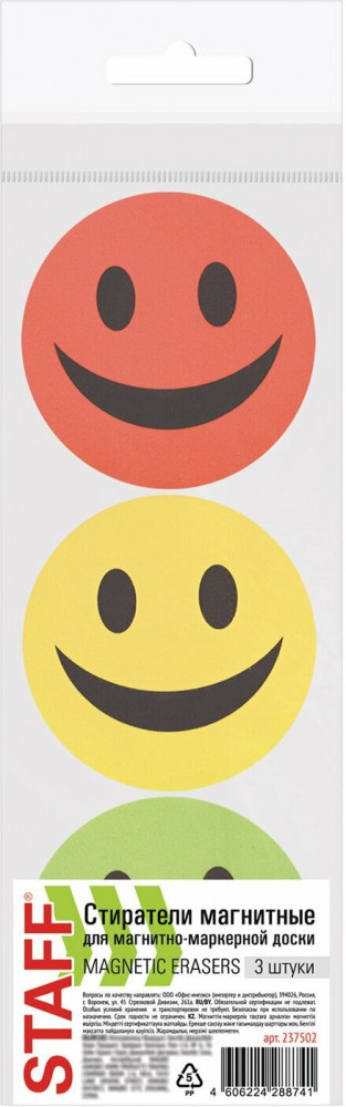 💳 Оплатить за товар можно при получении 🇰🇿 Есть бесплатная доставка по Казахстану от 1 дня 🎁 Копите бонусы с каждой покупки Магнитные стиратели предназначены для стирания сухим способом надписей, сделанных маркером, с белых досок. Встроенный магнит позволяет расположить стиратель в любом месте рабочей поверхности доски. Стиратель имеет эргономичную круглую форму и необычный яркий дизайн в виде смайлика. Стирающий слой выполнен из фетра. |