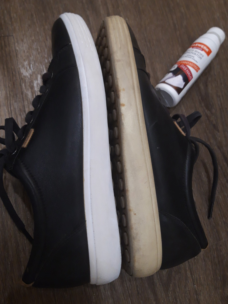 Краска отличная, наносится легко, высыхает быстро за 10 минут. С ее помощью вернула к жизни кеды Ecco, подошва которых пожелтели и не помогали никакие попытки отбелить ее (даже осветлителем для волос пробовала по рекомендации какого-то ютуб блогера). Краска не очень долго держится, но всегда ведь можно обновить слой, тем более флакон не одноразовый.
