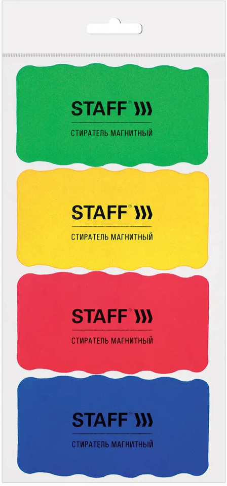 Встроенный магнит позволяет расположить стиратель в любом месте рабочей поверхности доски. Стирающий слой выполнен из фетра. В комплекте 4 стирателя: зеленый, красный, желтый, синий.