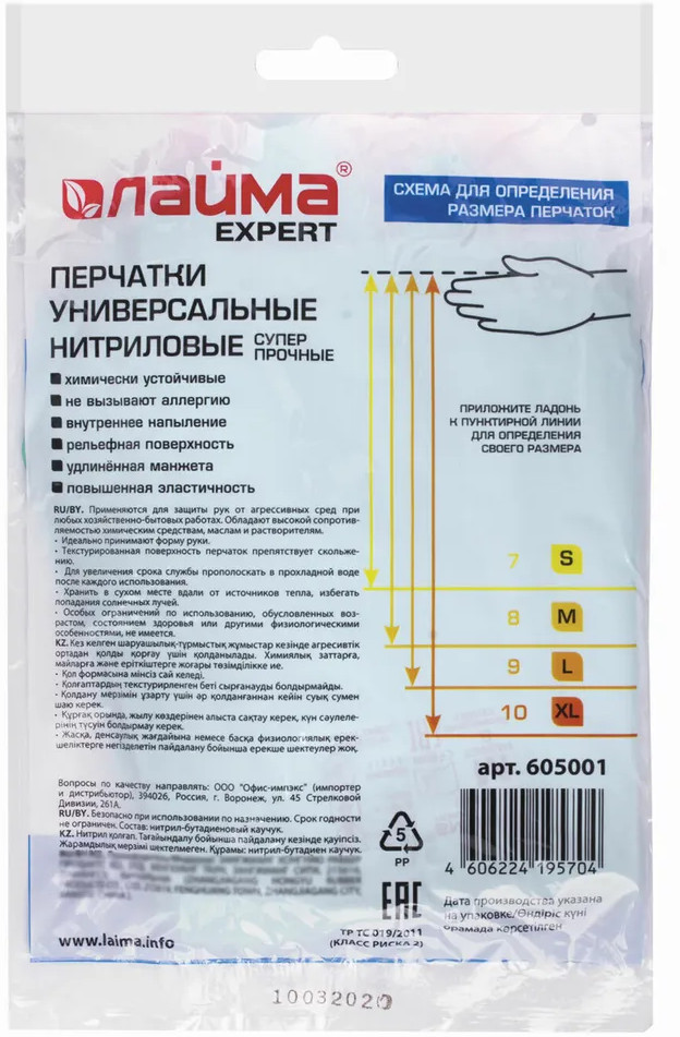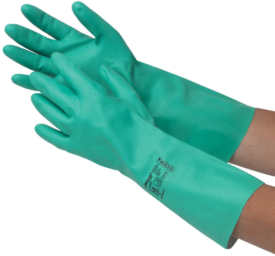 Очень важно подобрать перчатки по размеру! Перчатки из нитрила выдерживают воздействие очень агрессивных сред: кислотных и щелочных, что делает обязательным их применение при работе с бытовой химией.