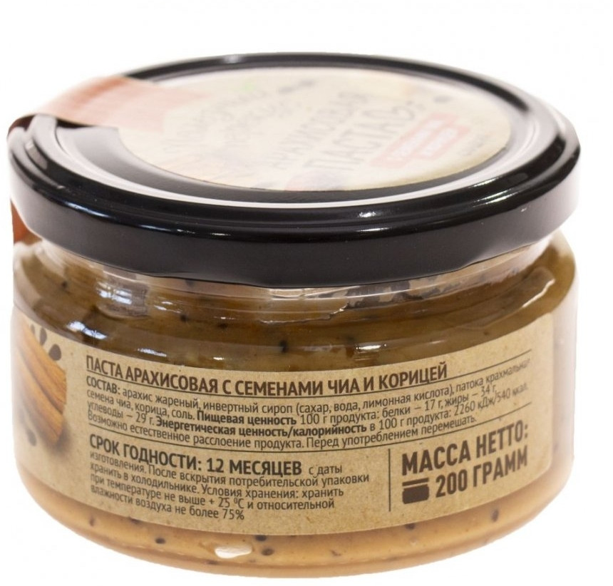 Полезный перекус Паста арахисовая с семенами чиа и корицей