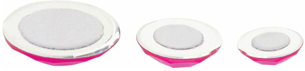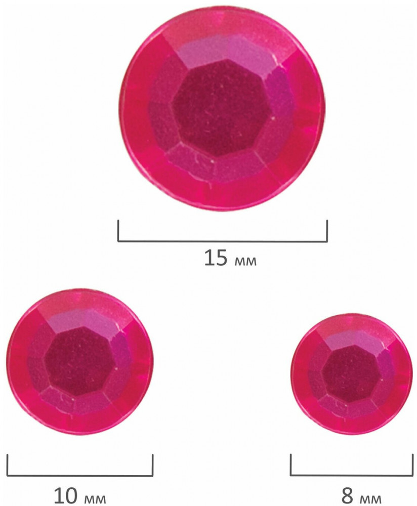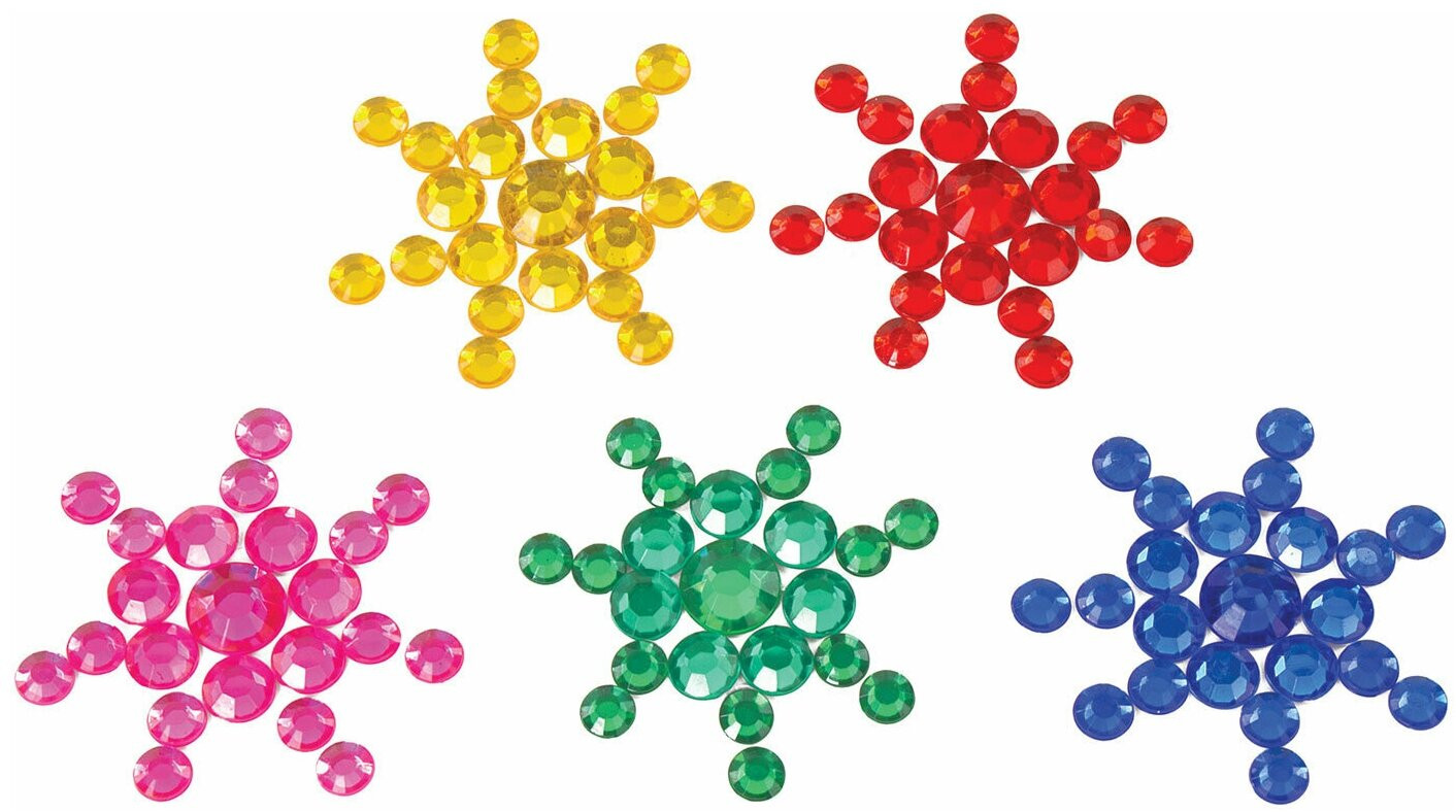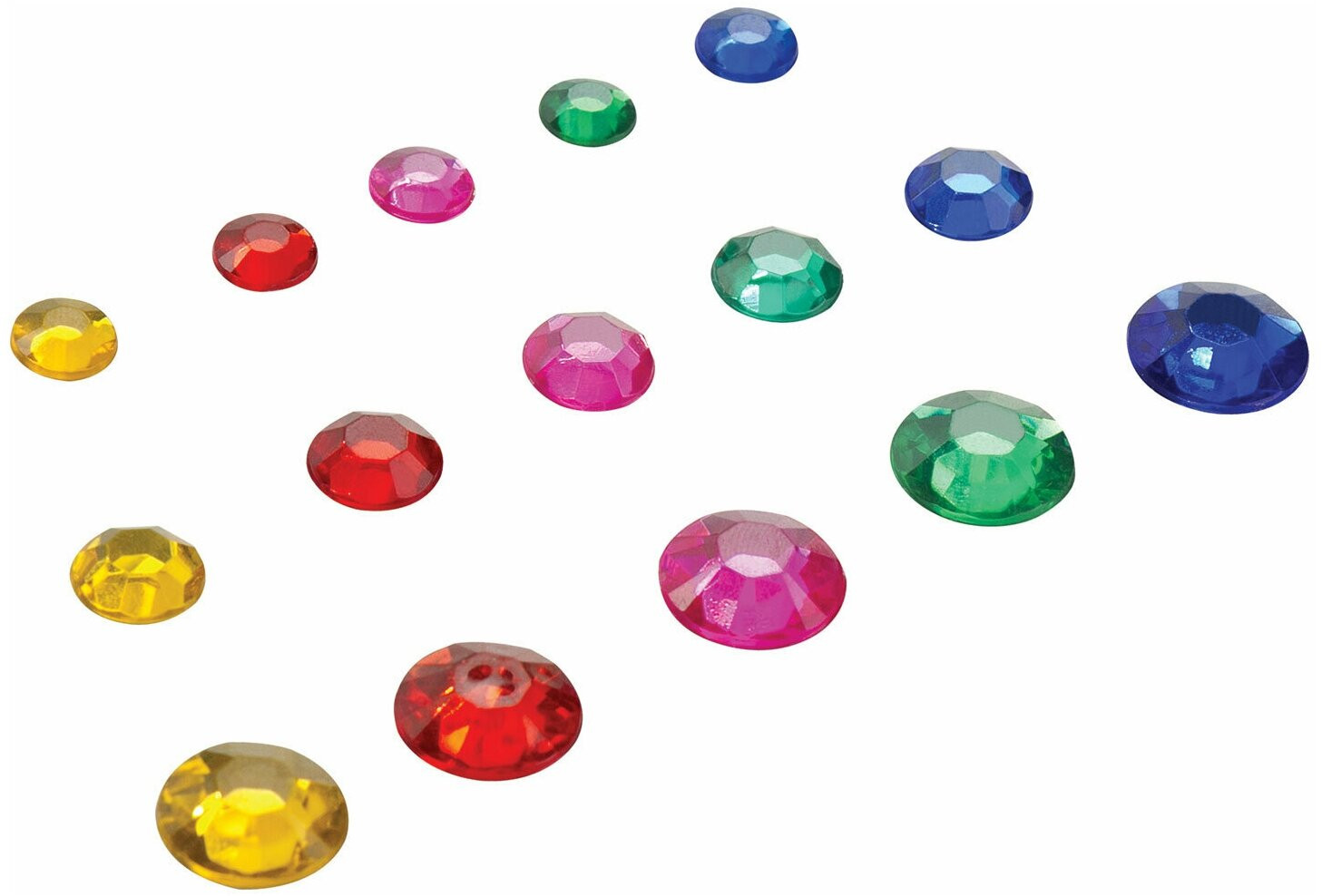 Качественный клеевой слой обеспечит надежную фиксацию на любых поверхностях. Изготовлены из пластика на основе акрила. Стразы представлены в трех размерах. Имеют круглую форму и выполнены в 5 завораживающих цветах. Предназначены для детей от 3 лет.