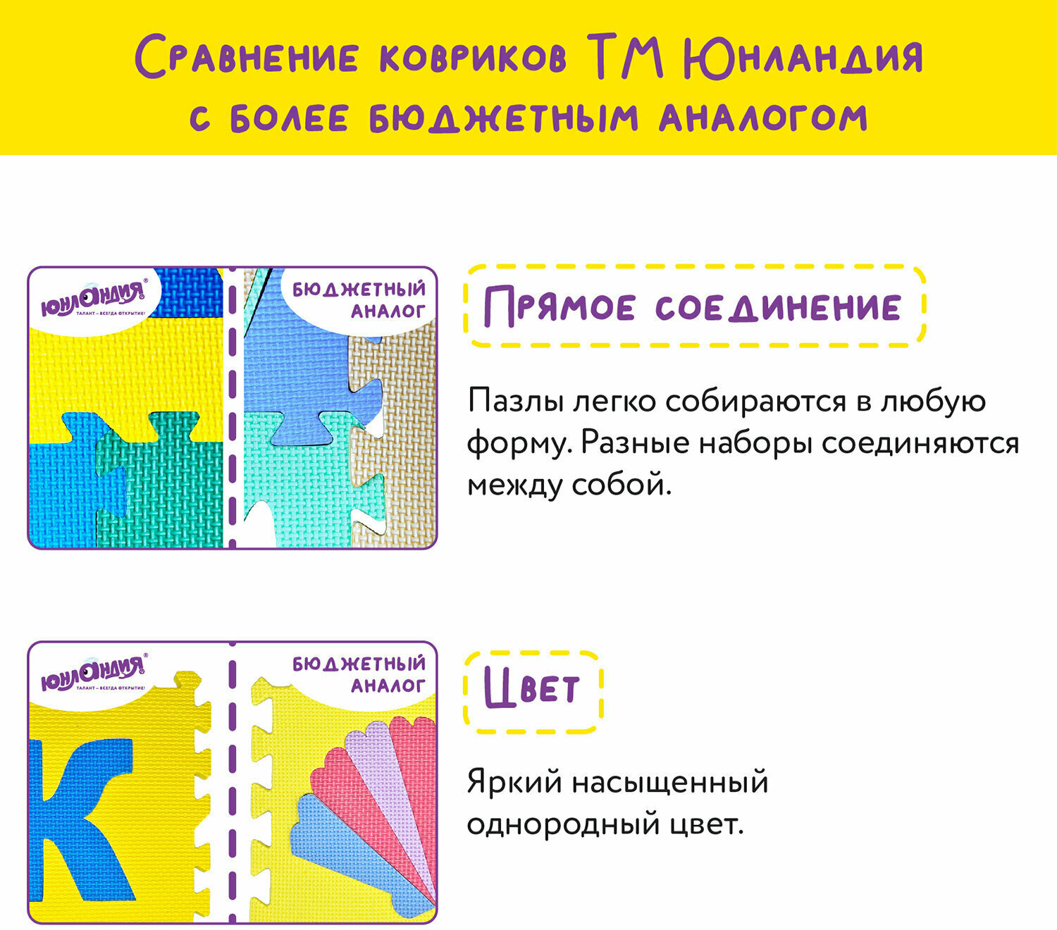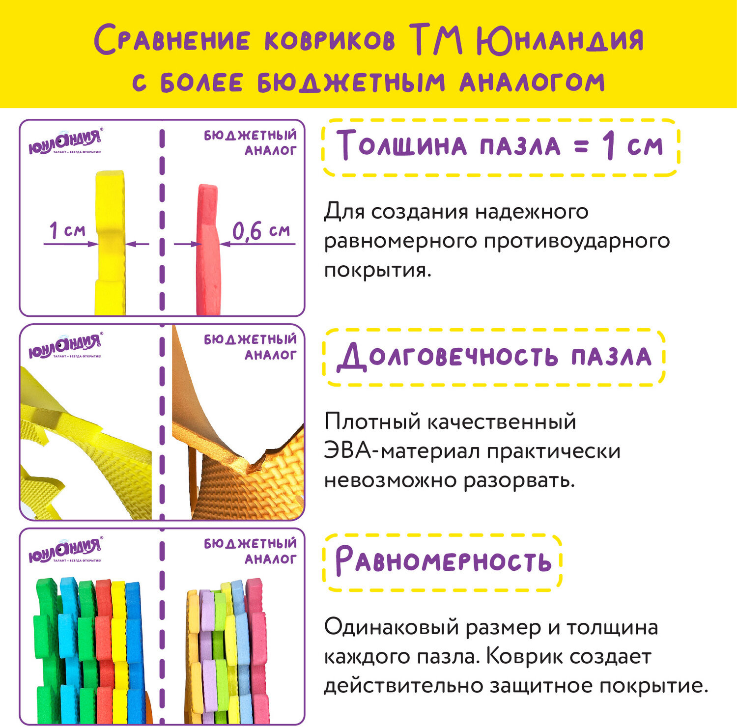 💳 Оплатить за товар можно при получении 🇰🇿 Есть бесплатная доставка по Казахстану от 1 дня 🎁 Копите бонусы с каждой покупки Коврики-пазлы Юнландия — мягкие коврики, обладающие теплоизоляционными и шумоизоляционными свойствами, изготовленные из безопасного материала. Легко собираются и разбираются, удобны и компактны в хранении. |