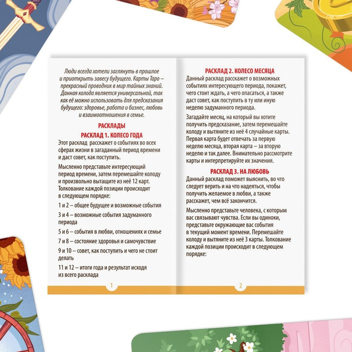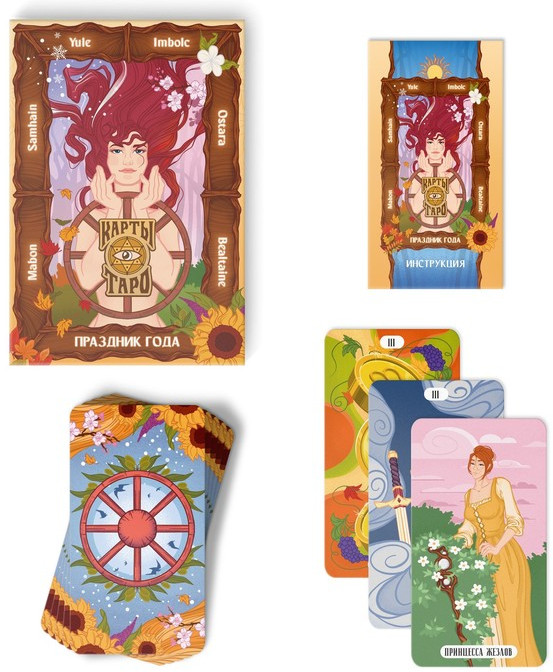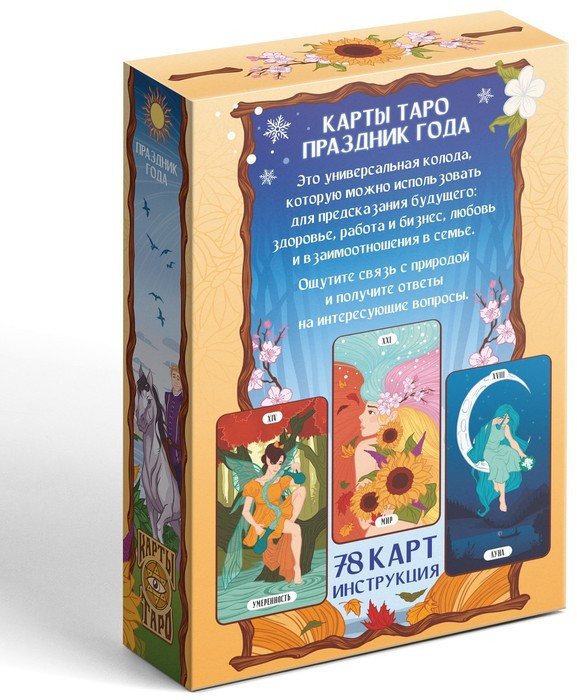С помощью универсальных карт Таро «Праздник года» каждый погрузиться в мир тайных знаний и получит заветные ответы на темы: здоровья, бизнеса, любви и взаимоотношений. Вас ждет колода из 78 карт с яркими иллюстрациями, наполненными фантастической символикой природного царства.