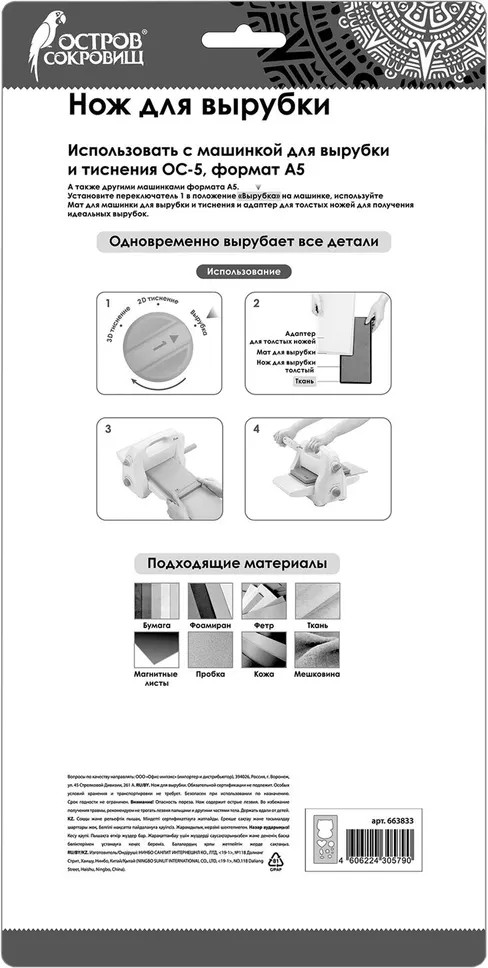 💳 Оплатить за товар можно при получении 🇰🇿 Есть бесплатная доставка по Казахстану от 1 дня 🎁 Копите бонусы с каждой покупки Серия: Толстые ножи для вырубки Ножи для вырубки Остров сокровищ — это пластины с мощными фигурными ножами, позволяющие легко и быстро создавать вырубки из множества различных материалов: картон, фоамиран, фетр, кожа, пробка и другие. Используются с машинкой для вырубки и тиснения ОС-5. |