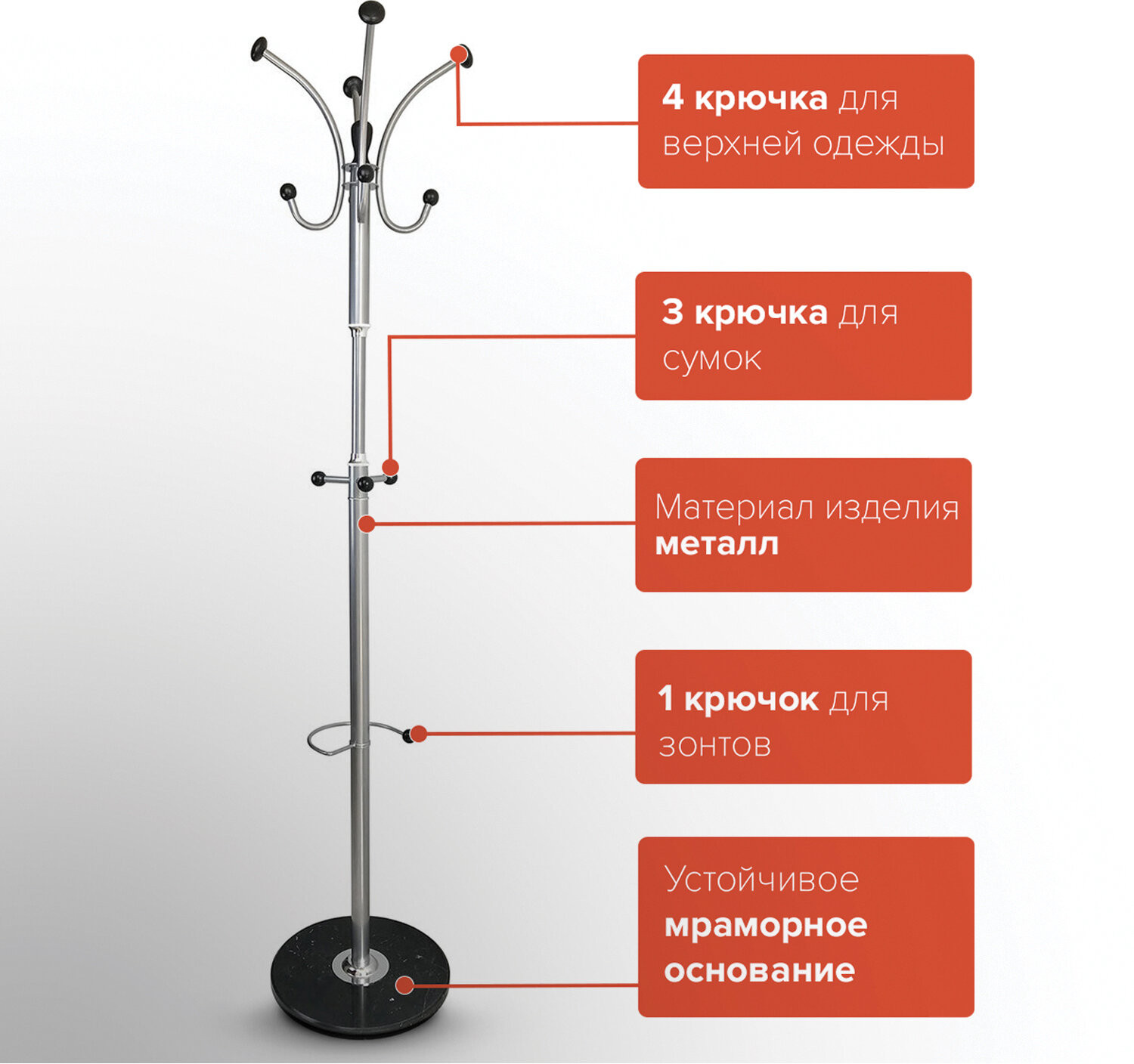 💳 Оплатить за товар можно при получении 🇰🇿 Есть бесплатная доставка по Казахстану от 1 дня 🎁 Копите бонусы с каждой покупки Напольная вешалка-стойка Brabix «CR-855» с прочными металлическими крючками для верхней одежды и головных уборов и стойкой для зонтов — функциональное решение для хранения вещей в офисе и дома. |