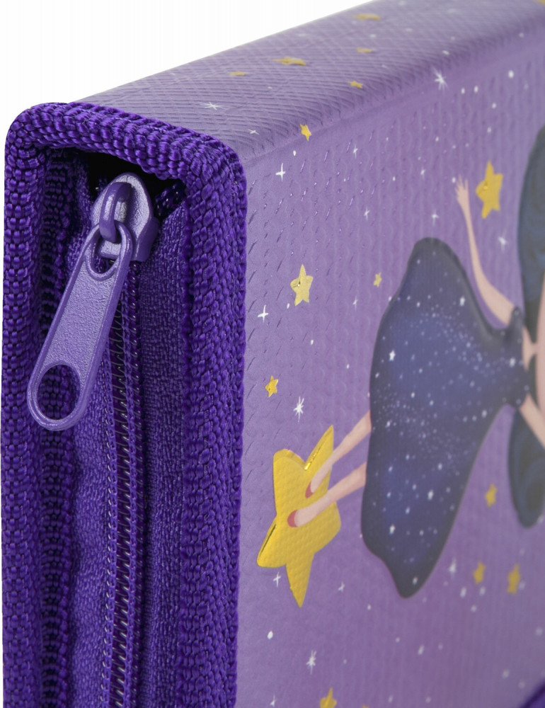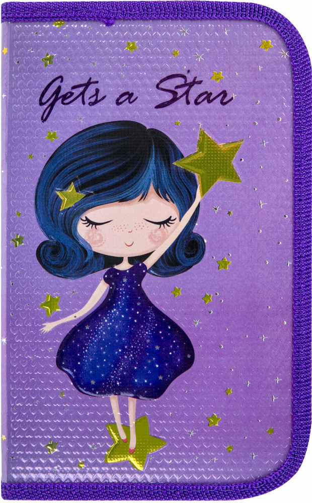 Пенал «New star» стандартного размера с одним отделением. Удобная молния с трех сторон с металлическим бегунком, прочные резинки для канцелярских принадлежностей. Вмещает до 18 предметов. Материал пенала — металлизированный картон с цветной печатью, эффектом объема и ярким дизайном. Основа пенала — плотный картон, обшитый тканью по краям. Такая конструкция отличается износостойкостью и прочностью, поможет защитить канцелярские принадлежности от повреждений. Внутри пенала прочные резинки для канцелярских принадлежностей.