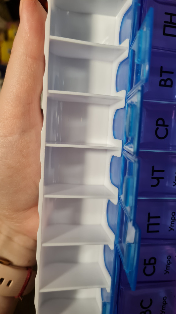 Очень довольна покупкой, посещается большое количество таблеток, витаминок. Покупала для мамы, чтобы все ее витамины распределить. Маме тоже понравилось.