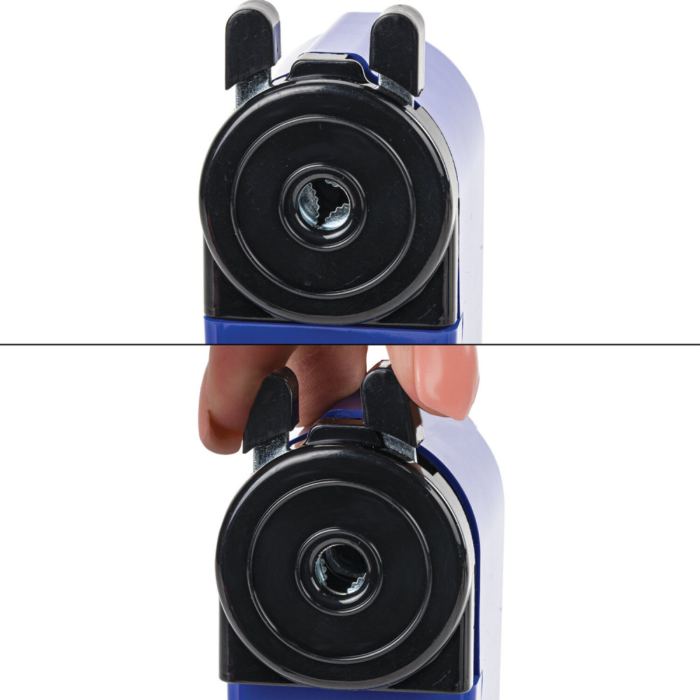 Ужасная точилка. С трудом приспособились в четыре руки. Ломает стержни, постоянно детали выходят. Выкинула деньги на ветер и вернулась к электрической.