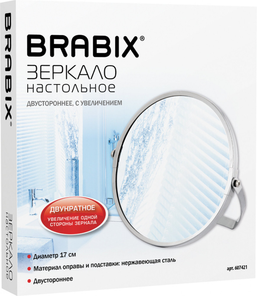 Brabix Зеркало настольное-35% +103 удобное двустороннее портативное непрочное