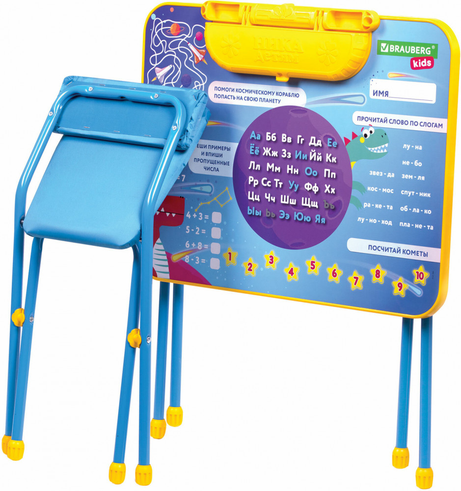 💳 Оплатить за товар можно при получении 🇰🇿 Есть бесплатная доставка по Казахстану от 1 дня 🎁 Копите бонусы с каждой покупки Комплект детской мебели предназначен для обустройства рабочего места ребенка в общественных, жилых помещениях, а также учебных заведениях для детей в возрасте от 3 до 7 лет. Изделие в сложенном виде упаковано в одну компактную картонную коробку. Столешница содержит русский алфавит и обучающие упражнения по арифметике и чтению. На столе можно рисовать маркером на водной основе. Размер стола — 60 × 45 см, высота до поверхности столешницы — 58 см. Стул имеет мягкое сиденье и спинку из ткани с водоотталкивающей пропиткой. Размер сиденья — 28,5 × 27 см. Стул выдерживает вес ребенка до 50 кг. Вместительный пенал для письменных принадлежностей. Удобный механизм складывания и компактное хранение. Есть крючок для рюкзака или ранца. |