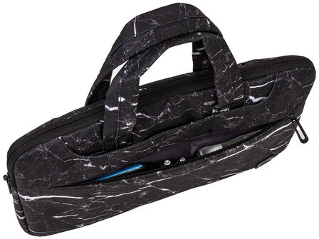Стенки и дно уплотнены слоем специальной амортизирующей пены, что позволяет защитить ноутбук или документы от механических повреждений. Необходимые для электронного устройства аксессуары, такие как блок питания, мышка и прочее, можно разместить отдельно, во внешних карманах, что предохранит ноутбук от царапин.