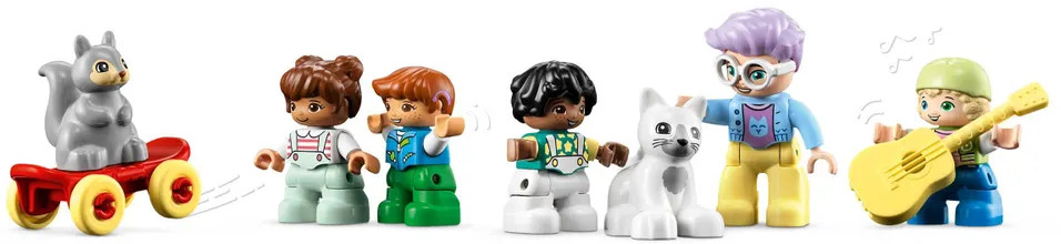 В этот набор входят разнообразные игрушечные персонажи, включая фигурку бабушки, 4 детей, птичку, кошку и белку, чтобы родители могли играть вместе со своим малышом и обучать его социальным навыкам и групповым играм. С набором креативных аксессуаров маленькие строители изучают возможности самовыражения, придумывая безграничные творческие истории. Малыши учатся через игру.