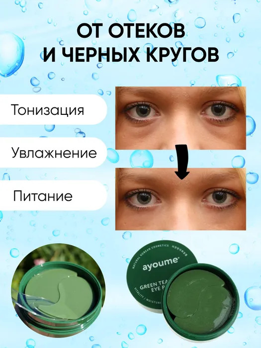 Ayoume Маска-патчи для глаз от отечности «Green Tea + Aloe»