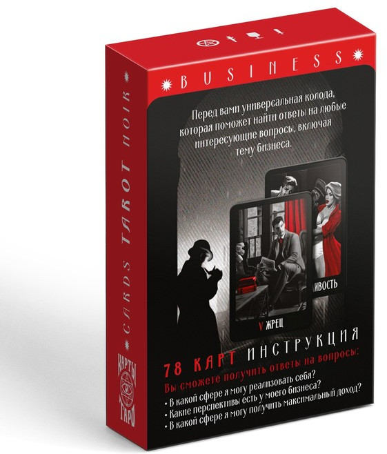 Лас Играс Таро «Noir»иллюстрации подробные значения неаккуратный срез отсутствие карт ошибка нумерации В данный момент этот товар отсутствует в продаже. Возможно, у нас найдется аналогичный или похожий товар здесь. Серия: Карты Таро Noir – это не просто карты. Это ваш персональный проводник в сферу бизнеса. Вас ждут 78 карт в стиле мафия, каждая из которых направит на финансовый поток и даст ответы на интересующие вопросы. С этой универсальной колодой вы сможете узнать: |