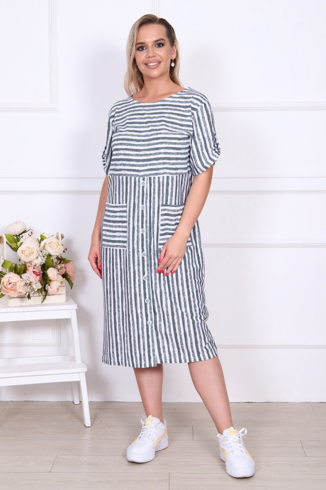 Платье понравилось, идёт по размеру. Сшито аккуратно. Материал не очень тонкий. Успела поносить в жару. Очень комфортное не сковывающее движения платье, дышащее, как раз на лето. Мелкие жёлтые пуговки на моем платье почти не заметны, т.к. проходят по бежевой полосе. Думаю, что менять их не стоит. На небольшой рост подошло хорошо, желание носить его каждый день.