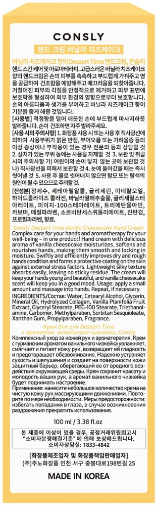 Consly Крем для рук с ароматом ванильного чизкейка+52 увлажняет аромат качество