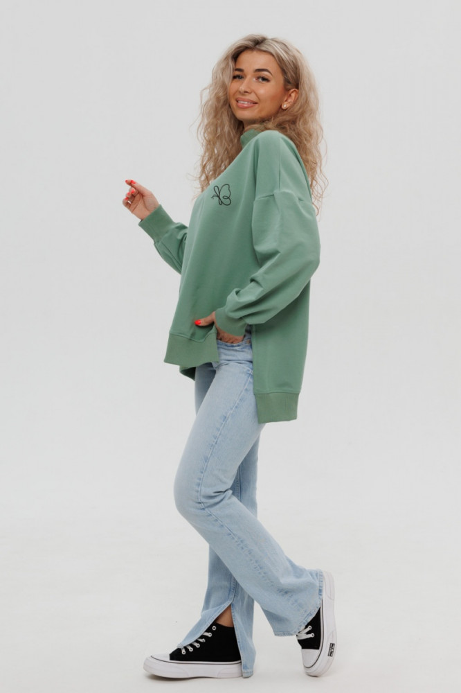 На свой 56 размер, рост 165 см, ог 115, от 97, об 128 кофточка села прекрасно! Свободно, как я и хотела. Даже очень свободно! Сзади длиннее, чем спереди, хорошо прикрывает попу. Смотрится очень стильно, современно. В общем мне очень нравится!👍 Возьму ещё лавандовую.