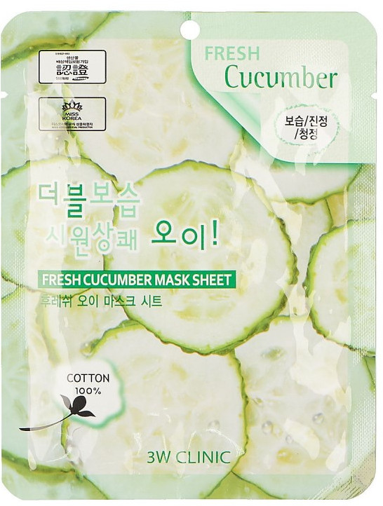 3W CLINIC Маска для лица тканевая с экстрактом огурца