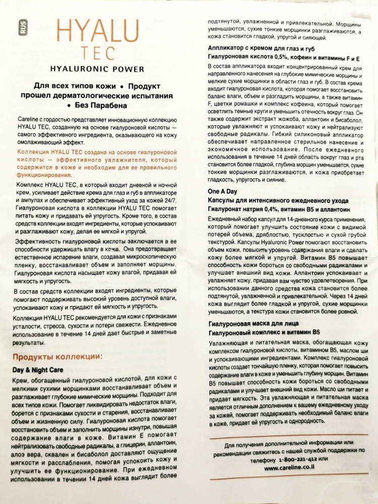 Careline Набор сывороток для лица с гиалуроновой кислотой «Интенсивный уход»В данный момент этот товар отсутствует в продаже. Возможно, у нас найдется аналогичный или похожий товар здесь. Серия: Hyalu Tec Ампулы для интенсивного ухода за кожей. В упаковке 15 капсул по 1,5 мл. Чистая гиалуроновая кислота в сочетании с витамином D помогает восстановить объем и влажность. Интенсивная и целенаправленная процедура, подходящая для всех типов кожи, в любом возрасте для предотвращения признаков преждевременного старения. Ампульная упаковка предназначена для ежедневного использования в течение двух недель, чтобы сбалансировать и помочь коже, которая страдает от признаков потери объема, дряблой кожи, серости и сухой и грубой текстуры. |