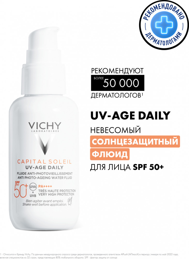 Vichy Capital Soleil UV-AGE DAILY Невесомый солнцезащитный флюид для лица против признаков фотостарения SPF 50+, 40 мл+758