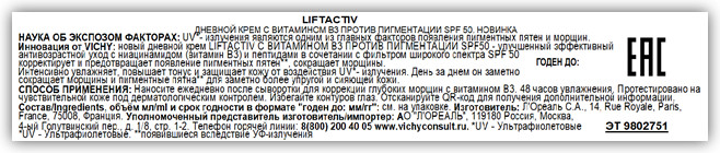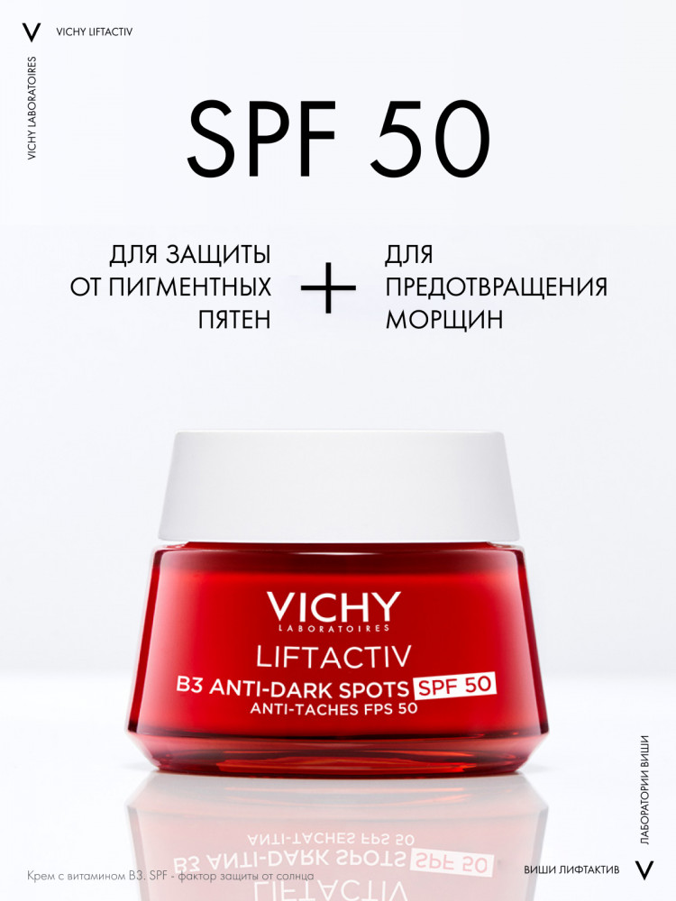 💳 Оплатить за товар можно при получении 🇰🇿 Есть бесплатная доставка по Казахстану от 1 дня 🎁 Копите бонусы с каждой покупки Серия: Liftactiv UV-излучения* являются одним из главных факторов появления пигментных пятен и морщин. Инновация** от VICHY — новый дневной крем LIFTACTIV с витамином B3 против пигментации SPF 50. Улучшенный эффективный антивозрастной уход с ниацинамидом (витамин B3) и пептидами в сочетании с фильтром широкого спектра SPF 50. Клинически доказанная эффективность. Корректирует и предотвращает появление пигментных пятен**, сокращает морщины. Гипоаллергенно. Протестировано на чувствительной коже под контролем дерматологов. |