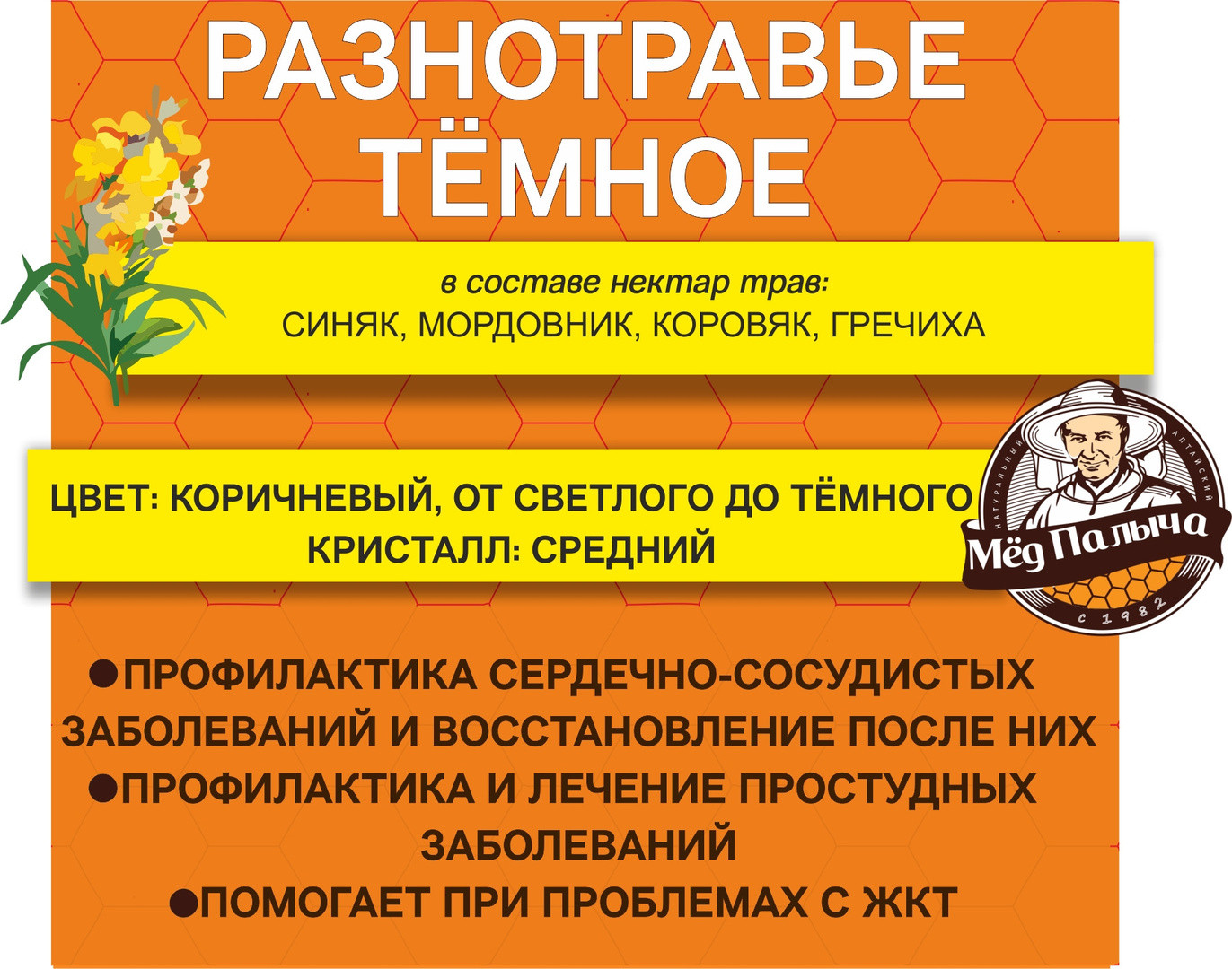 Мёд Палыча Мед «Разнотравье тёмное»