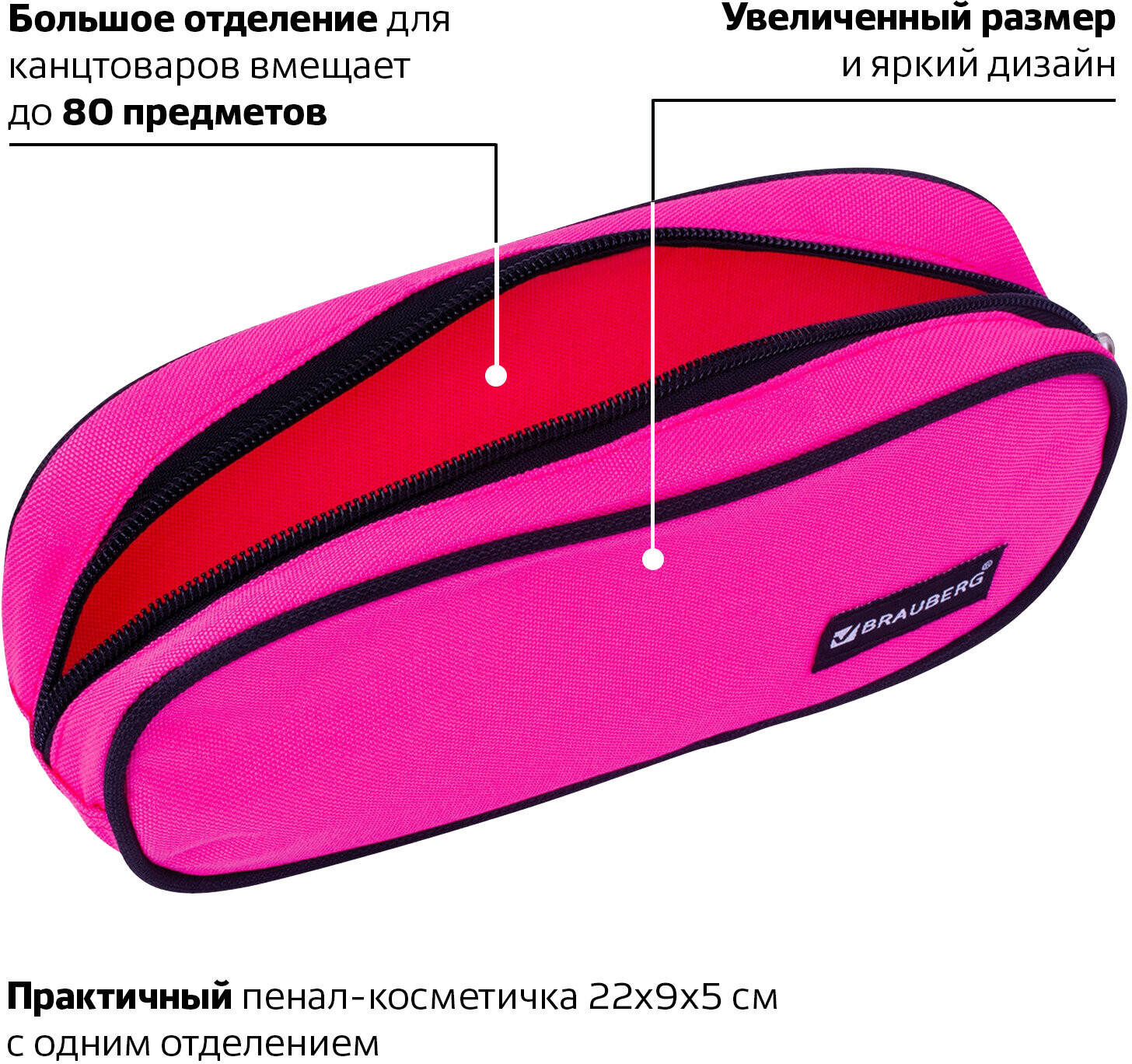 Brauberg Пенал-косметичка «Pink»+15 вместительный держит форму подходит детям цена-качество яркий