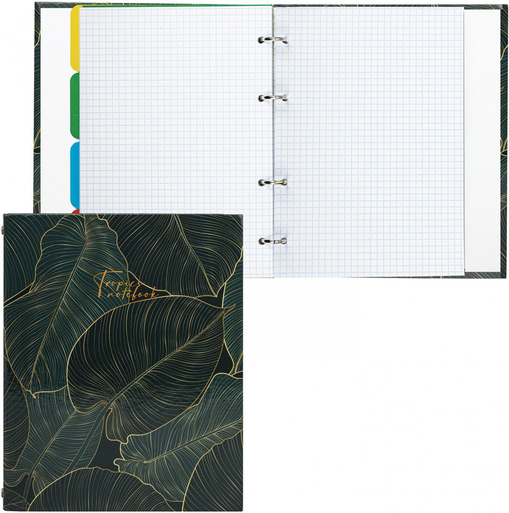 Brauberg Тетрадь на кольцах «Листья»-20% +81 много листов цветные разделители бумага в клетку плотная обложка