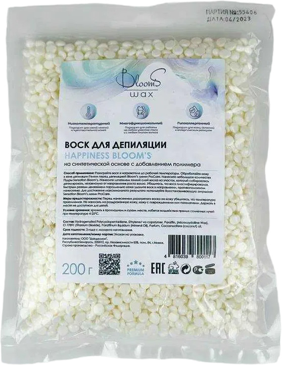 Меры предосторожности: перед нанесением разогретого воска на кожу убедитесь, что температура приемлемая. Не наносить на раздраженную кожу, кожу с повреждениями или пораженную патологиями. Держать в месте не доступном для детей.