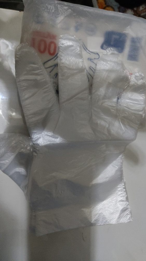Нормальные перчатки, планирую их использовать на кухне, при работе с мясом. На мою руку они большие (обычно я беру размер S, нитриловые или латексные перчатки), но если надевать их на влажные руки, то будут более плотнее сидеть и не скатываться. В упаковке 100 штук (50 пар). Для одноразового использования очень удобно.