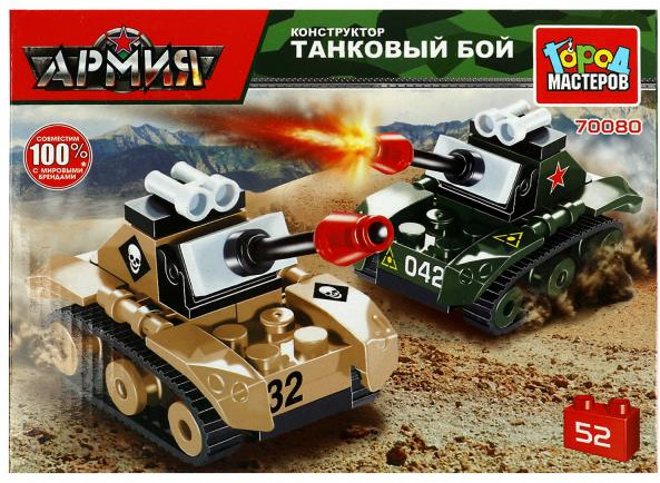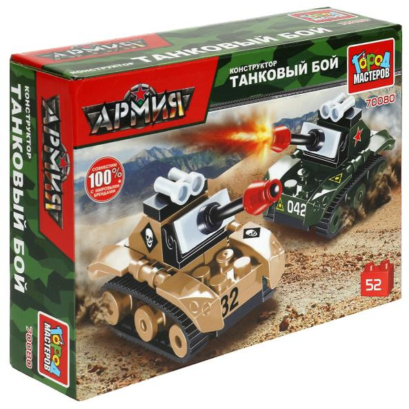 Город мастеров Конструктор «Танковый бой»В данный момент этот товар отсутствует в продаже. Возможно, у нас найдется аналогичный или похожий товар здесь. Конструктор «Танковый бой» из серии «Армия» ТМ «Город мастеров» понравится маленьким героям. С помощью этого занимательного конструктора ваш ребёнок может собрать 2 реалистичные модели военной техники. Набор вдохновит малыша на новые увлекательные сюжеты для игр и станет гордостью его игрушечной коллекции. |