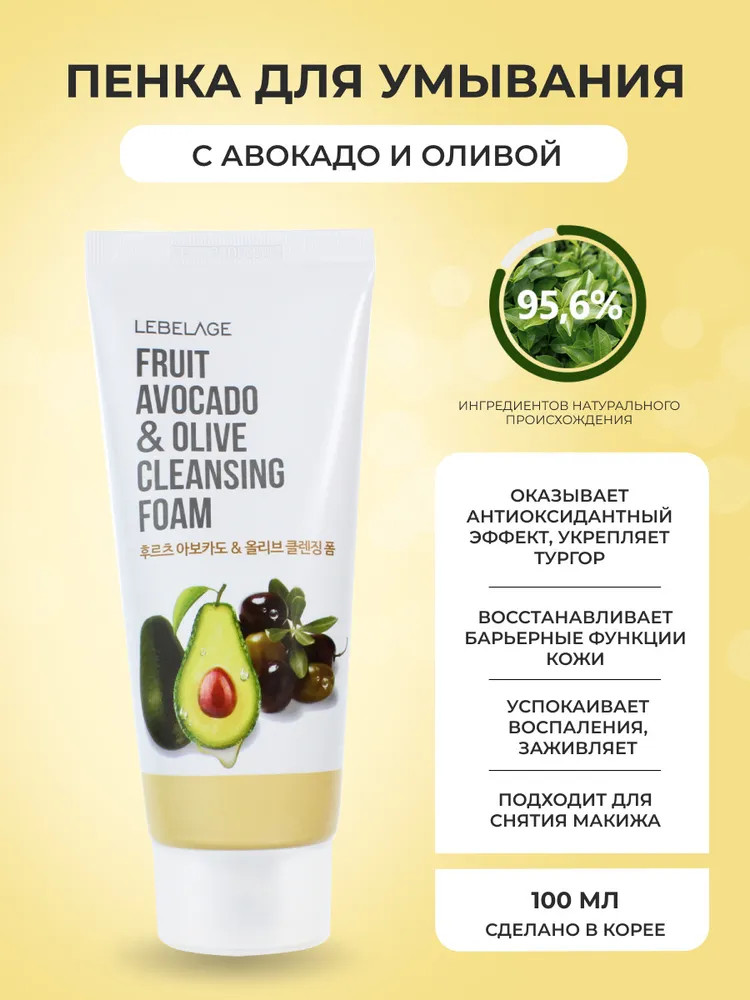 Lebelage Пенка для лица очищающая с авокадо и оливой «Fruit Avocado & Olive»