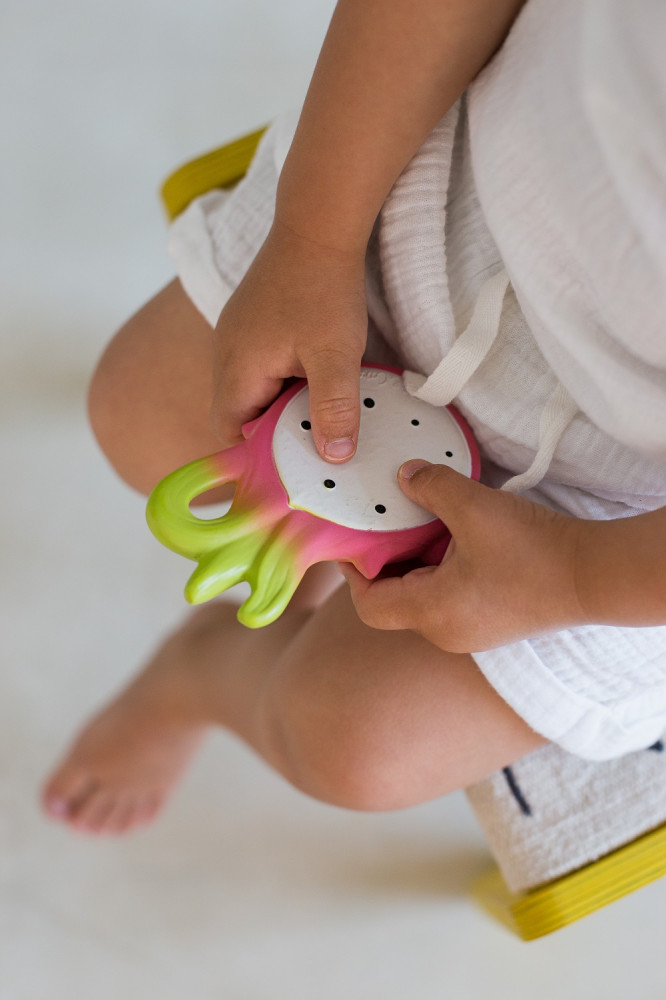 Oli&Carol Прорезыватель «Fucsia the Dragonfruit»В данный момент этот товар отсутствует в продаже. Возможно, у нас найдется аналогичный или похожий товар здесь. «Fucsia the Dragonfruit» — это прорезыватель для зубов из натурального каучука, который также можно использовать в играх и при купании. Каучук очень приятный материал для детских десен. Начните прививать здоровый образ жизни ребенка с самого раннего детства. |