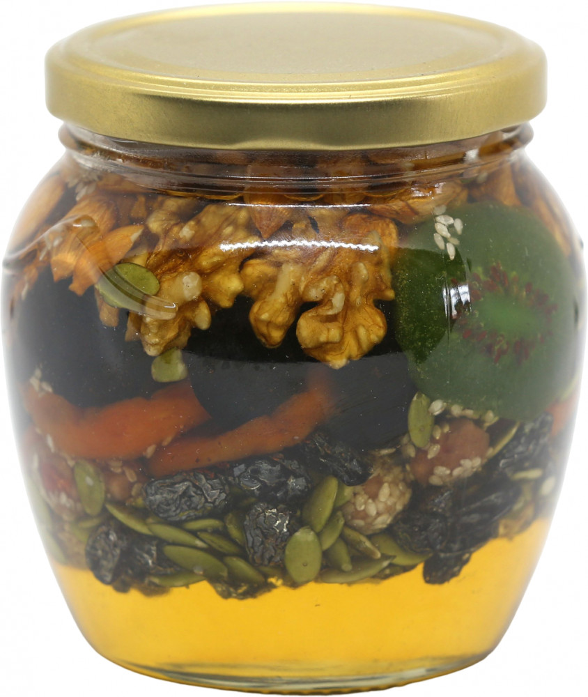 Крестьянское хозяйство «Дары природы» Композиция медовая «Ассорти из орехов и сухофруктов с киви в меду»+30
