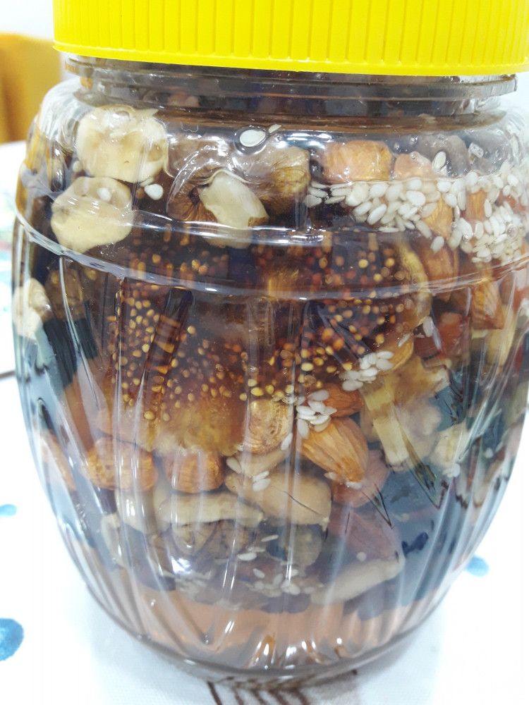 Сам мёд и сухофрукты мне понравились. Крупные орехи и сухофрукты.
