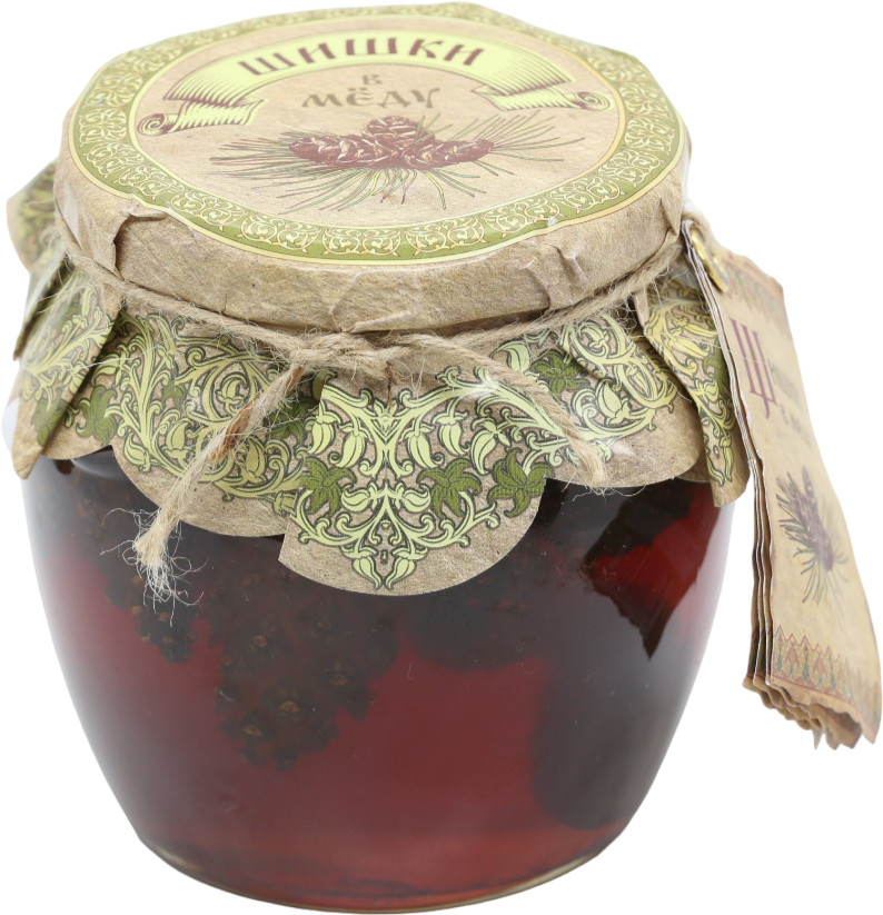 Заинтриговало название. Раньше ела варенье из грецких орехов, а здесь шишки в меду. Правда баночка пришла не еловые шишки, а сосновые. На вкус варенье, тогда "в меду" это рекламный ход производителя, чтобы поставить такую цену. Польза, конечно, не подлежит сомнению. На баночке состав не указан.