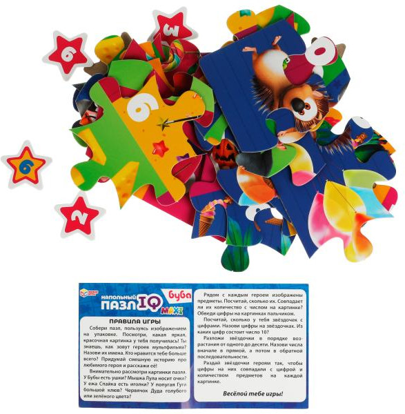 💳 Оплатить за товар можно при получении 🇰🇿 Есть бесплатная доставка по Казахстану 🎁 Копите бонусы с каждой покупки Напольный IQ-пазл «Буба. Весёлый счёт» ТМ «Умные игры» — отличная развивающая игра для самых маленьких: |