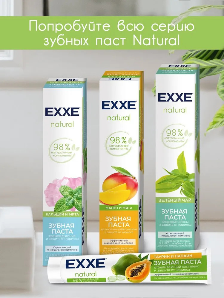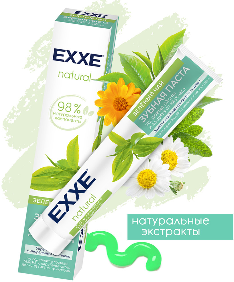 EXXE Зубная паста с ароматом зелёного чая «Здоровые дёсны и защита от кариеса»В данный момент этот товар отсутствует в продаже. Возможно, у нас найдется аналогичный или похожий товар здесь. Серия: Natural Зубная паста EXXE Natural «Зелёный чай» — это здоровые дёсны и защита от кариеса. Зелёный чай, календула и шалфей снижают чувствительность дёсен. Кальций защищает от кариеса, укрепляющий минеральный комплекс восстанавливает зубную эмаль. Современная формула, которая не содержит в составе: SLS, PEG, парабены, фтор, диоксид титана, хлоргексидин, триклозан. Не тестируется на животных. |
