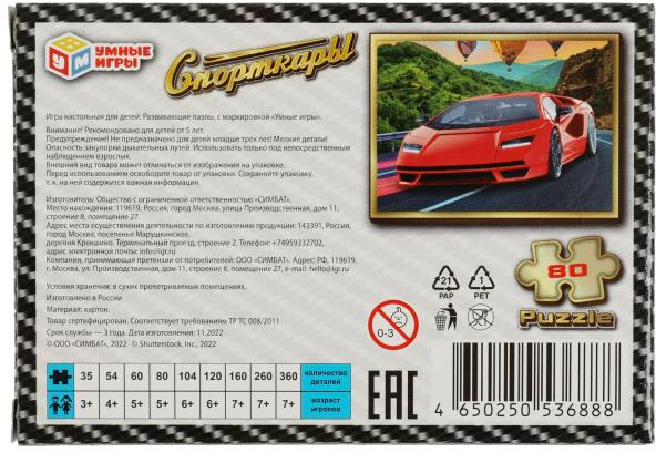 Пазлы «Спорткары» ТМ «Умные игры» — отличная развивающая игра для детей:
