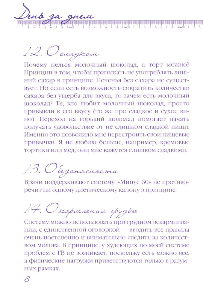Несколько раз пыталась перейти на систему -60, но постоянно что-то происходило - то срыв, то спад в сбросе веса..... Cейчас контролирую своё питание с дневником, стало намного легче, если забудешь определенный моменты по системе, то можно подсмотреть на ближайшей странице, а так же появился спортивный интерес, лишний раз не охота есть, то, что нельзя.