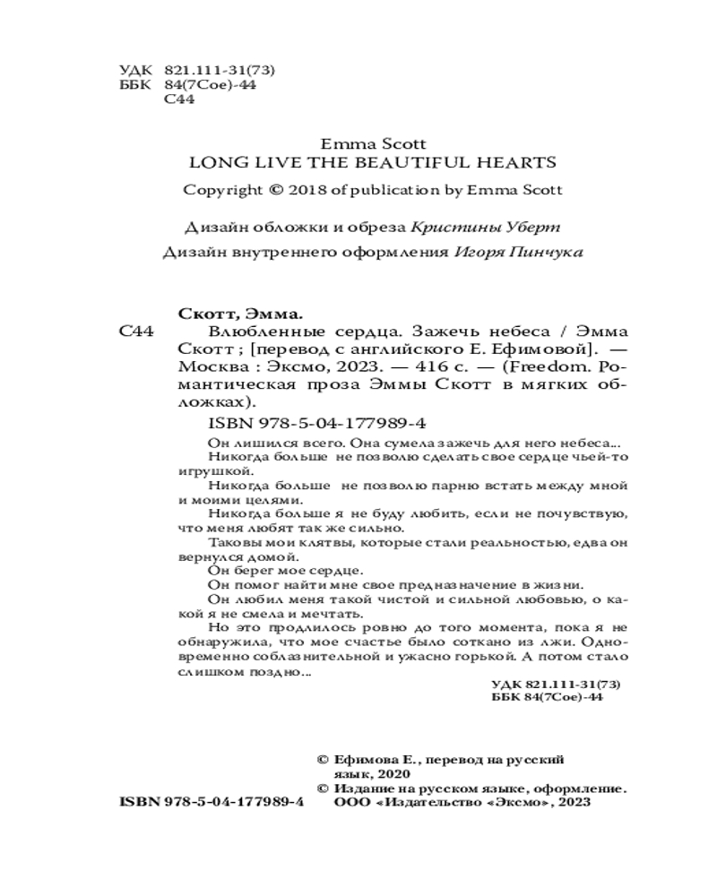Бестселлеры Эммы Скотт в новом, стильном оформлении. Удобный формат, мягкая обложка — все для того, чтобы не расставаться с любимыми героями романов.