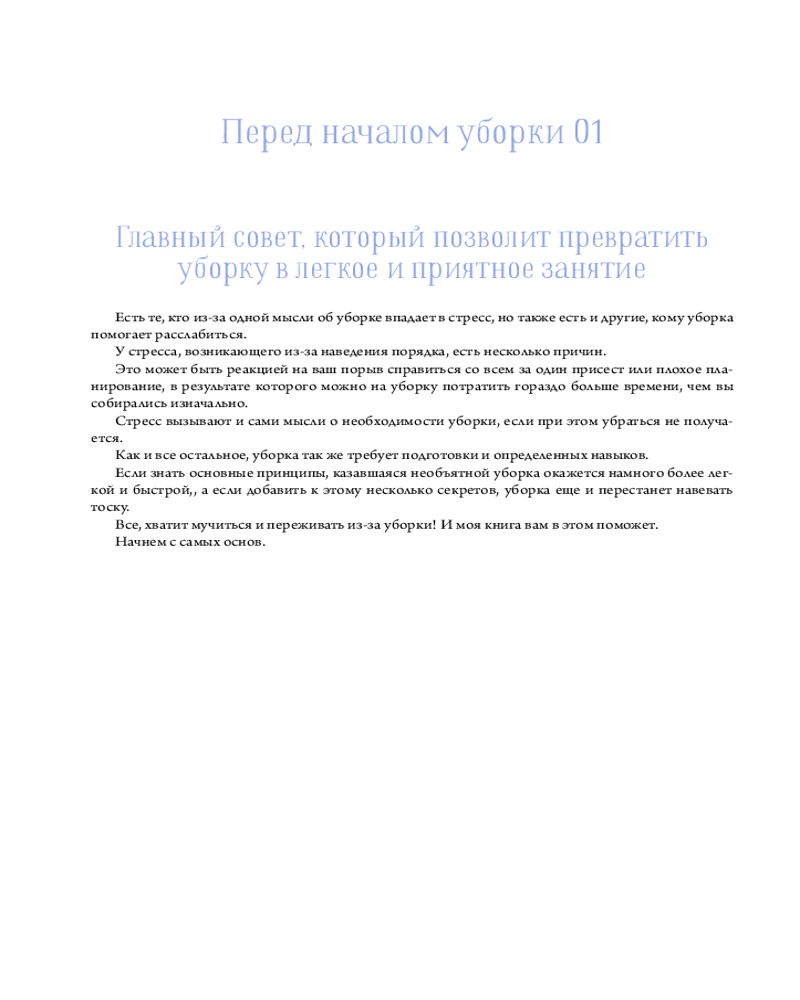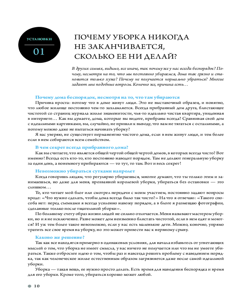 Эта книга — энциклопедия по уборке от настоящего гуру уборки. Читатель найдет в ней советы о том, как очистить любой предмет от стиральной машины до компьютерной мышки и каждое пространство в доме, не потратив ни единой нервной клетки, а напротив, ощутив расслабляющий эффект от уборки.